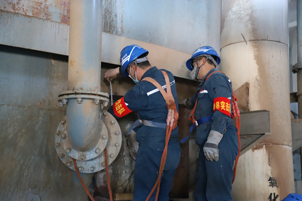 一個(gè)黨支部就是一座堡壘,一個(gè)黨員就是一面旗幟,疫情防控嚴(yán)峻形勢(shì)下,灰硫車(chē)間黨支部戰(zhàn)斗堡壘在助力安全生產(chǎn)中迸發(fā)出強(qiáng)大力量。3月16日1點(diǎn)40,吸收塔漿液漏泄,影響脫硫系統(tǒng)安全運(yùn)行,存在環(huán)保參數(shù)超標(biāo)風(fēng)險(xiǎn),轉(zhuǎn)機(jī)班在接到缺陷后,立即組織全員上陣,黨員廖振海,李亞洲、楊得志在檢修中率先垂范,爭(zhēng)做表率,全身上下被漿液淋濕浸透也絕不后退半步,利用自制的木頭塞經(jīng)過(guò)5次嘗試臨時(shí)封堵住漏點(diǎn),并用6mm鐵板自行焊接制作密封盒,內(nèi)部澆灌水泥,徹底消除了漏泄的隱患,確保了環(huán)保設(shè)備安全運(yùn)行?;伊蜍?chē)間在對(duì)灰場(chǎng)2號(hào)除灰管道巡視檢查中發(fā)現(xiàn)灰管道漏泄,為了避免發(fā)生環(huán)保事件,機(jī)械班迅速組織人員搶修。工作中,黨員王雷、吳侃,工作組成員夏延鵬沖鋒在前,進(jìn)入到冰冷的水中用卡具封堵漏點(diǎn),由于搶修及時(shí)避免了環(huán)保事件的發(fā)生,保證了我廠(chǎng)除灰渣系統(tǒng)安全可靠運(yùn)行?;伊蜍?chē)間黨支部在特殊時(shí)期,積極響應(yīng)廠(chǎng)黨委的號(hào)召,嚴(yán)格執(zhí)行我廠(chǎng)各項(xiàng)工作部署,黨員帶頭沖鋒一線(xiàn),堅(jiān)決守住人身、設(shè)備、環(huán)保底線(xiàn),體現(xiàn)“硬核”擔(dān)當(dāng),用行動(dòng)展示基層黨支部昂揚(yáng)向上的精神面貌。