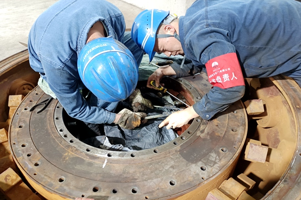 人員少,工期緊,任務重,這些猶如大山壓頂,行路堪難,尤其中期防磨防爆,班組還抽出了絕大部分主力,讓境況更是雪上加霜,但是這絲毫沒有將他擊垮,帶著寥寥幾人,繼續(xù)檢修任務??梢詺缥?,但是絕對不會打敗我,就算只剩“一兵一卒”,也誓要披荊斬棘戰(zhàn)至終章。作為班長,不僅是干活,還需要協(xié)調,四處奔走查看情況......電話聲不斷,信息不止是常態(tài):“龍哥,這邊緊銅套需要再安排一個人”“汪班長,明天能進行1號空壓機保養(yǎng)不”“龍哥,這邊空預器吊電機,安排人來協(xié)助下”......似乎等待他停下腳步休息的一天永遠不會到來,即便如此分身乏術,也需迎難而上、砥礪前行。最終圓滿完成一號爐B級檢修與二號爐C級檢修任務:包括一號爐的送、引風機解體檢修、一次風機、除塵器、空預器檢修,二號爐汽水閥門檢修、汽包、撈渣機檢修……一個又一個任務的完成是他這條無畏路上最好的勛章與證明。憶來時,風雨險阻,都已是“回首向來蕭瑟處,歸去,也無風雨也無晴”。