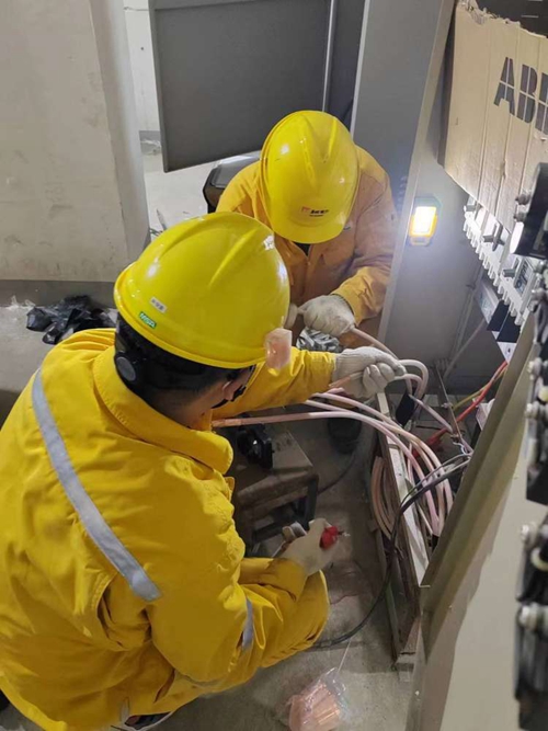 當(dāng)一切方案和材料都就位后,又一個(gè)問題出現(xiàn)了,那就是人手。工程部電氣專業(yè)僅有兩位同志,可是即要工作不打折扣地全部完成,又要是以最短的工期結(jié)束戰(zhàn)斗,這就成了不可能的任務(wù)。然而,協(xié)同作戰(zhàn)從來都是華潤人的優(yōu)良傳統(tǒng)。接到需要支持的信號后,華潤電力徐州公司維修部派來了四名專業(yè)技術(shù)人員,熱力公司的生產(chǎn)部也抽調(diào)了電氣班組的人員參與其中。