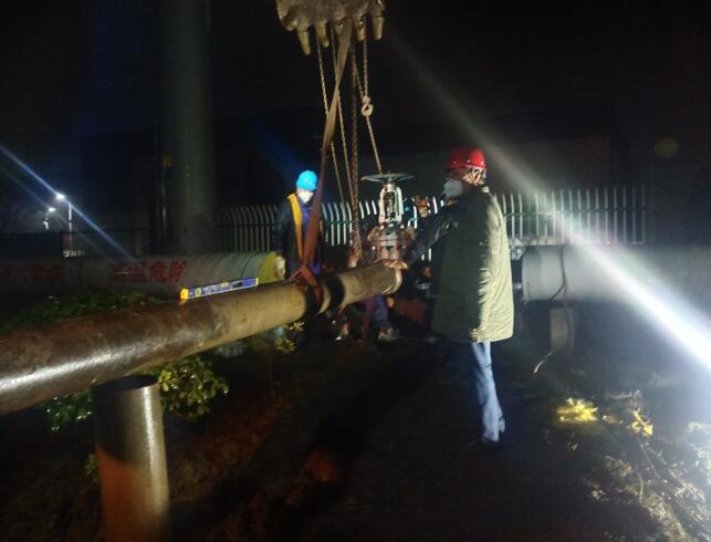 “方區(qū)長要求務必連夜搶修,確保盡快投產(chǎn)!現(xiàn)在這個非常時期,雙匯食品復產(chǎn)是重要的民生工程......”“不管風雪多大,保證完成任務!”向當?shù)卣畢R報得到反饋后,華電蕪湖公司迅速成立“攻堅隊”,按照一級搶險任務實施進行:確定“改道引管供汽”方案、編制《廠外供熱至雙匯地埋管道消缺方案及安全技術(shù)措施》、組織施工人員及物料到位,連夜施工連夜開工,并由總工、副總工親自現(xiàn)場督陣,全力以赴推進供暖缺陷搶修任務。
