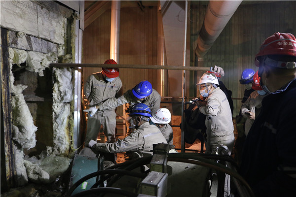 此次消缺期間室外最低氣溫達(dá)到零下20度左右,防寒防凍無(wú)疑是消缺工作的重中之重,長(zhǎng)山廠及時(shí)切換供熱方式,利用化廠備用熱源為家屬區(qū)供熱,同時(shí)也為防寒防凍工作、機(jī)組順利啟動(dòng)提供可靠保證。在此期間,各單位各負(fù)其責(zé),全員行動(dòng),全面開展防寒防凍工作。發(fā)電部作為主體責(zé)任部門,從主任到單元長(zhǎng),從值班員到巡檢員,明確區(qū)域,認(rèn)真排查,每小時(shí)測(cè)量廠房所有區(qū)域溫度,同時(shí)對(duì)門窗封閉、室外管路保溫等防寒防凍措施進(jìn)行再次確認(rèn);設(shè)備部一方面制定方案組織相關(guān)單位消缺,一方面全面安排部署極寒天氣下的防寒防凍工作;各車間(分場(chǎng))在生產(chǎn)廠房各層重要部位設(shè)置炭火爐,對(duì)熱控表管表計(jì)、電氣電子間盤柜、氨區(qū)管路進(jìn)行檢查,增加伴熱帶,設(shè)置值班人員監(jiān)測(cè)環(huán)境溫度,全力以赴確保防寒防凍工作萬(wàn)無(wú)一失。消缺期間,行政事務(wù)部積極做好后勤保障工作,按時(shí)準(zhǔn)備盒飯送到現(xiàn)場(chǎng),助力消缺工作順利完成。