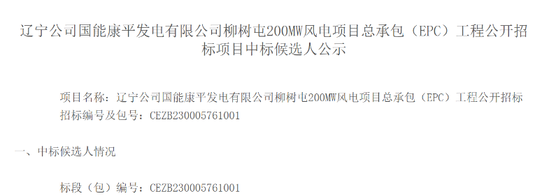 國(guó)能康平發(fā)電有限公司柳樹(shù)屯200MW風(fēng)電項(xiàng)目總裝機(jī)容量為200MW,安裝43臺(tái)單機(jī)容量為4550kW和1臺(tái)單機(jī)容量為4350kW的風(fēng)電機(jī)組,所選機(jī)型單位千瓦掃風(fēng)面積不低于6.2m2/kW,葉輪直徑不低于190m,輪轂高度140m,新建一座220kV升壓站。計(jì)劃工期:2023年7月31日-2024年6月30日