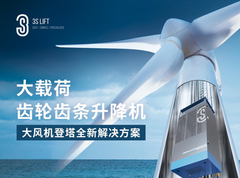 還有值得一提的是,為滿足大兆瓦風(fēng)機(jī)和高塔筒的升降需求,3S推出了載荷350kg(含以上),空間可承載3人(及以上),以爬梯或鋼齒條為導(dǎo)向的大載荷塔筒升降機(jī),疊加多項(xiàng)安全配置,可兼容擴(kuò)展功能更強(qiáng)大,升降機(jī)設(shè)備智能化更高。憑借其高安全性和高效率性,3S大載荷升降機(jī)將成為大風(fēng)機(jī)登塔解決方案優(yōu)選。