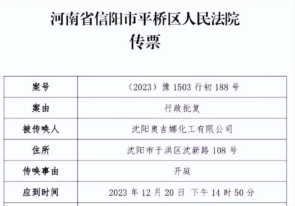 2023年12月1日,中國風(fēng)電潤滑油龍頭企業(yè)沈陽奧吉娜化工有限公司(下簡稱奧吉娜公司)收到河南省信陽市平橋區(qū)人民法院開庭傳票,奧吉娜公司訴信陽市生態(tài)環(huán)境局和第三人華陽長青投資有限公司行政訴訟案,將于2023年12月20日14時50分開庭審理。屆時,這起風(fēng)電潤滑油央企招投標(biāo)“民告官”第一案結(jié)果如何,讓我們拭目以待。