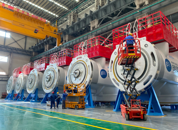 明陽智能海上風(fēng)電產(chǎn)業(yè)園內(nèi)設(shè)備高效運轉(zhuǎn)、操作者各司其職 陳坂升 攝