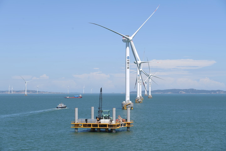 福建三峽海上風(fēng)電國際產(chǎn)業(yè)園一角(無人機照片)。新華社記者 林善傳 攝