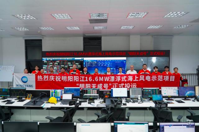 “明陽(yáng)天成號(hào)”由明陽(yáng)集團(tuán)自主研制,為全球首次在一個(gè)浮式基礎(chǔ)上搭載兩臺(tái)8.3兆瓦海上風(fēng)機(jī),總裝機(jī)容量達(dá)到16.6兆瓦,是目前全球最大的漂浮式風(fēng)電平臺(tái),平臺(tái)排水總量約1.5萬噸,投運(yùn)于離岸約70公里、水深約45米的明陽(yáng)陽(yáng)江青洲四海上風(fēng)電場(chǎng),預(yù)計(jì)每年可提供約5400萬度綠色電力,能滿足3萬戶三口之家一年的日常用電需求。