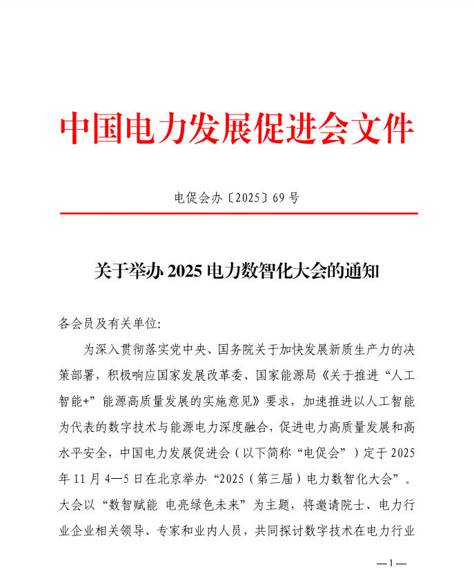 關(guān)于舉辦2025電力數(shù)智化大會(huì)的通知