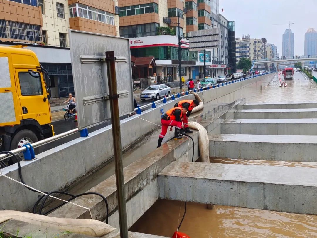 鄭州方向,安能三局派出25人,4臺(tái)龍吸水,2臺(tái)一體化泵車(chē),在京廣北路隧道由北往南展開(kāi)抽排水。針對(duì)鄭州站西廣場(chǎng)積水嚴(yán)重情況,中國(guó)安能三局采取“人歇機(jī)不停、兩班連續(xù)戰(zhàn)”的戰(zhàn)法,截止22日12時(shí)00分,完成抽排水26萬(wàn)方,水位下降約3.5米,已經(jīng)大幅度下降,西北側(cè)隧道道路面露出約60米。因下半夜抽排現(xiàn)場(chǎng)連續(xù)強(qiáng)降雨,抽排水仍在緊張工作中。在抽排水現(xiàn)場(chǎng),全體抽排水指戰(zhàn)員白天冒高溫、晚上頂濕冷,沒(méi)有一人叫苦叫累,他們團(tuán)結(jié)協(xié)作,有序有力奮戰(zhàn)在抽排水一線。
