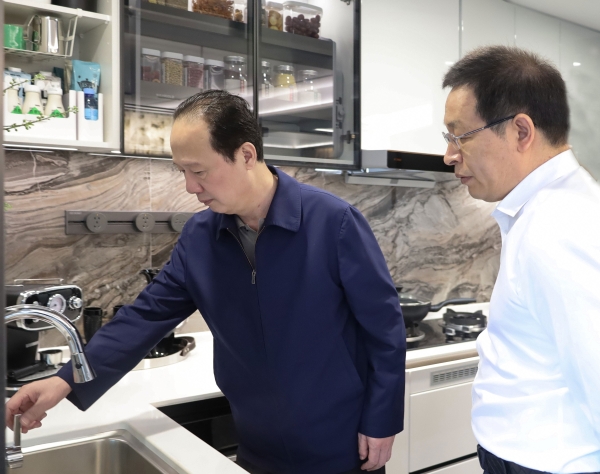 在電建地產(chǎn)公司所屬成都國賓華曦府項目,丁焰章實地查看售樓部、展示區(qū)及樣板間,了解項目建設和經(jīng)營情況,對電建地產(chǎn)公司近期工作給予肯定,對國賓華曦府項目的產(chǎn)品呈現(xiàn)和精工細作表示認可。