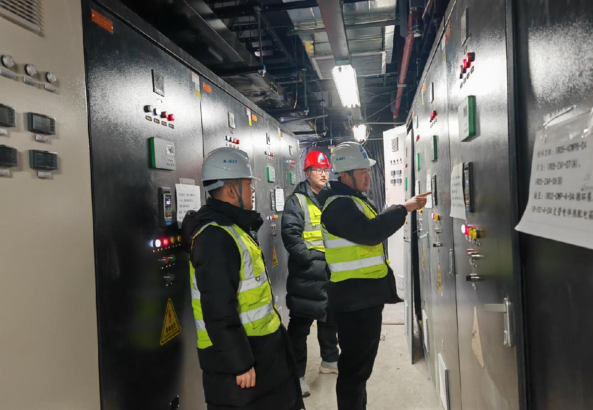“必須保證所有變電所分閘,防止重新送電時電流直接沖擊設備”“屋面泵房再去兩個人,重新起泵并保證壓力正常”“拿好對講機,一間屋一間屋地送電”……現(xiàn)場總指揮、項目生產(chǎn)經(jīng)理閆鵬的聲音堅定有力,全體值班人員嚴陣以待,緊張有序地執(zhí)行著操作指令。送電后,屋面泵房傳來水泵“轟隆隆”的機器運轉聲。調試成功有效驗證了柴發(fā)機組自身穩(wěn)定性和機組系統(tǒng)負荷控制能力,值班人員激動地歡呼。