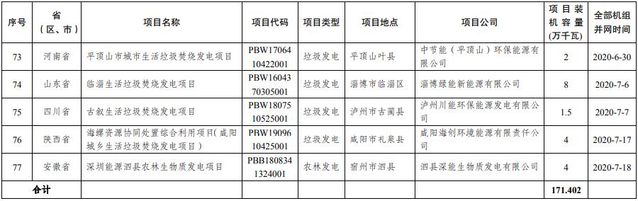 一、遵循公平、公正原則,經(jīng)委托國家可再生能源信息管理中心對(duì)各省(區(qū)、市)通過審核、公示無異議的項(xiàng)目進(jìn)行復(fù)核、匯總排序,擬將河北、山西等20個(gè)省(區(qū)、市)的77個(gè)項(xiàng)目納入2020年生物質(zhì)發(fā)電中央補(bǔ)貼規(guī)模,總裝機(jī)容量171.4萬千瓦,納入補(bǔ)貼范圍的項(xiàng)目所需補(bǔ)貼總額已達(dá)到2020年中央新增補(bǔ)貼資金額度15億元。其中,農(nóng)林生物質(zhì)發(fā)電項(xiàng)目18個(gè)、裝機(jī)容量53萬千瓦,垃圾焚燒發(fā)電項(xiàng)目46個(gè)、裝機(jī)容量116.3萬千瓦,沼氣發(fā)電項(xiàng)目13個(gè),裝機(jī)2.1萬千瓦,具體結(jié)果見附件。