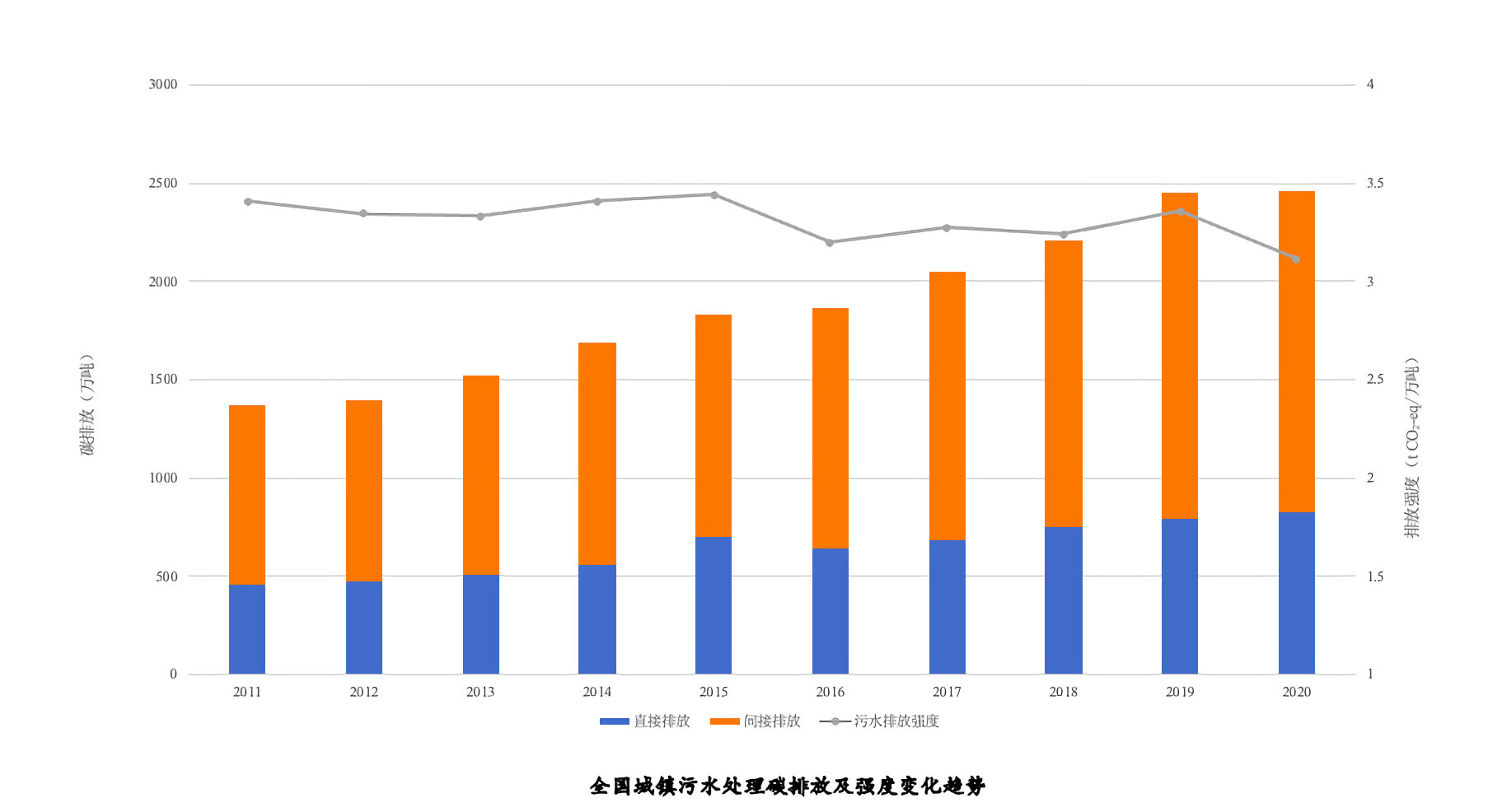 報(bào)告披露,全國城鎮(zhèn)污水直接碳排放和間接碳排放總體均呈現(xiàn)增長趨勢,2011-2020年均增速6.69%。圖/受訪者供圖
