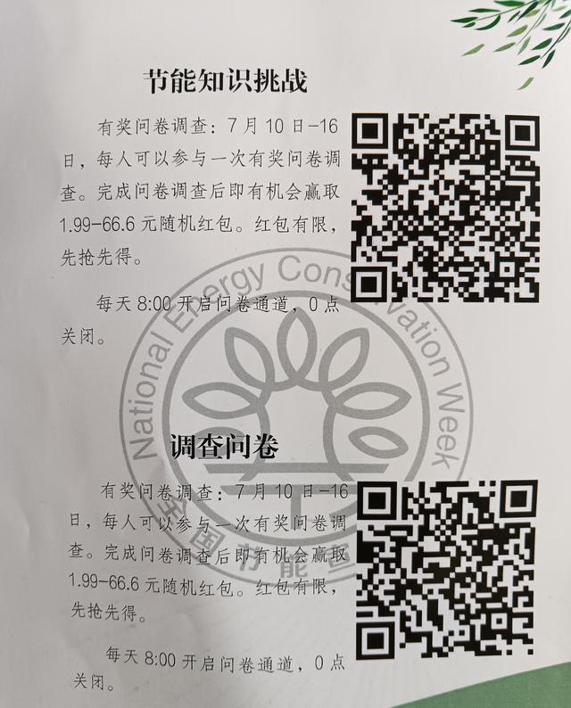 此外,記者還了解到,主辦方搭建了線上有獎(jiǎng)節(jié)能知識(shí)挑戰(zhàn)賽和調(diào)查問(wèn)卷平臺(tái),從7月10日到7月16日,平臺(tái)每天8時(shí)開啟問(wèn)卷通道,0時(shí)關(guān)閉。完成挑戰(zhàn)則有機(jī)會(huì)獲得最高66.6元的現(xiàn)金紅包。紅包有限,先搶先得。