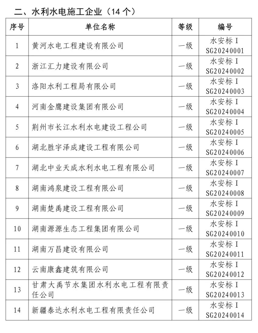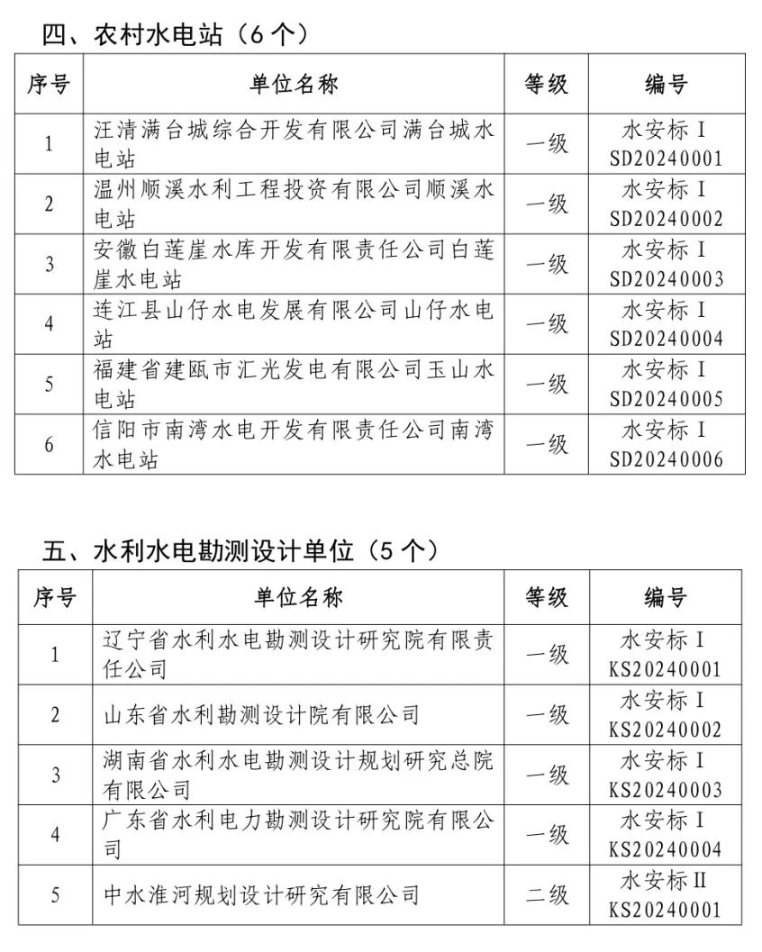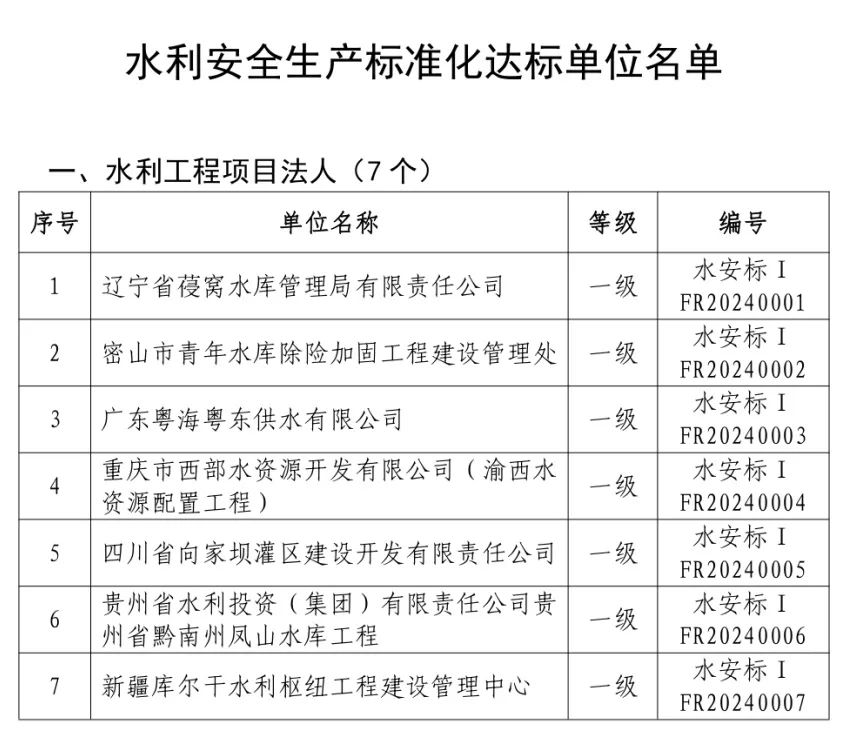 中新網(wǎng)1月22日電 據(jù)中國(guó)水利官方微信消息,根據(jù)《水利部關(guān)于印發(fā)〈水利安全生產(chǎn)標(biāo)準(zhǔn)化評(píng)審管理暫行辦法〉的通知》《水利部關(guān)于印發(fā)農(nóng)村水電站安全生產(chǎn)標(biāo)準(zhǔn)化達(dá)標(biāo)評(píng)級(jí)實(shí)施辦法(暫行)的通知》《水利部辦公廳關(guān)于印發(fā)〈水利安全生產(chǎn)標(biāo)準(zhǔn)化評(píng)審管理暫行辦法實(shí)施細(xì)則〉的通知》《水利部關(guān)于水利部安全生產(chǎn)標(biāo)準(zhǔn)化評(píng)審有關(guān)事項(xiàng)的通知》和《水利部辦公廳關(guān)于水利水電勘測(cè)設(shè)計(jì)等四類(lèi)單位安全生產(chǎn)標(biāo)準(zhǔn)化有關(guān)工作的通知》,經(jīng)評(píng)審,遼寧省葠窩水庫(kù)管理局有限責(zé)任公司等57個(gè)單位為安全生產(chǎn)標(biāo)準(zhǔn)化一級(jí)單位、中水淮河規(guī)劃設(shè)計(jì)研究有限公司等2個(gè)單位為安全生產(chǎn)標(biāo)準(zhǔn)化二級(jí)單位,名單如下。