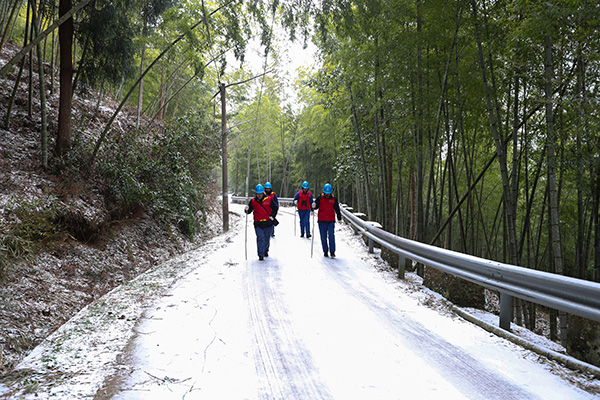 中國(guó)電力網(wǎng)訊 1月7日清晨,在平均海拔700米以上的浙江寧海雙峰山區(qū),隨著強(qiáng)冷空氣的抵達(dá),大山深處已覆上皚皚白雪。寧海縣黃壇鎮(zhèn)雙峰片區(qū)有2900多戶村民,為了防止冰凍天氣以及積雪對(duì)高壓線路的影響,國(guó)家電網(wǎng)浙江電力(寧海)紅船共產(chǎn)黨員服務(wù)隊(duì)分成四組,一大早就開始對(duì)這里的高壓線路進(jìn)行巡視和基礎(chǔ)維護(hù)。
