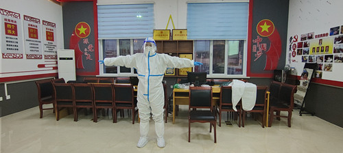 看著簡(jiǎn)單,但是實(shí)際操作起來(lái)屬實(shí)不易。在該處團(tuán)支部(青工委)書記講解完畢后,為了讓青工能夠切身感受穿戴防護(hù)服的過(guò)程,在參會(huì)的現(xiàn)場(chǎng)團(tuán)員青年中挑選了一名志愿者進(jìn)行了一次模擬穿脫防護(hù)服。青工李正陽(yáng)在完成一整套防護(hù)服穿戴流程后已經(jīng)是大汗淋漓,他邊擦額頭的汗水邊感慨道:“這才是穿和脫就已經(jīng)累到出汗,那些一線醫(yī)護(hù)人員一穿就是十幾二十個(gè)小時(shí),太不容易了,為他們的敬業(yè)精神感到欽佩。”