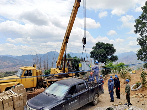 5月3日,營盤供電所轄區(qū)內10千伏甘塘線、10千伏政府線故障跳閘,線路設備多處故障。營盤供電所黨支部三名黨員同志迅速組織黨員突擊隊,全所12名男員工一起投入搶修中。經(jīng)排查,10千伏甘塘線故障點是紅木林配變低壓線路及電桿被大風吹倒的大樹砸斷,導致該配變噴油燒壞。10千伏政府線故障點是蒿子壩配變因雷擊導致燒壞?,F(xiàn)場搶修人員兵分兩路,一路負責在現(xiàn)場布置安全措施,將受損的帶電低壓線路停電;一路人員準備搶修材料、運送桿塔。搶修人員先是利用吊車清理地面殘余的桿塔,然后進行立桿、安裝橫擔、架線等一系列工作,經(jīng)過一天一夜的奮力搶修,10千伏甘塘線、10千伏政府線共計近1000戶用電戶全部恢復供電。