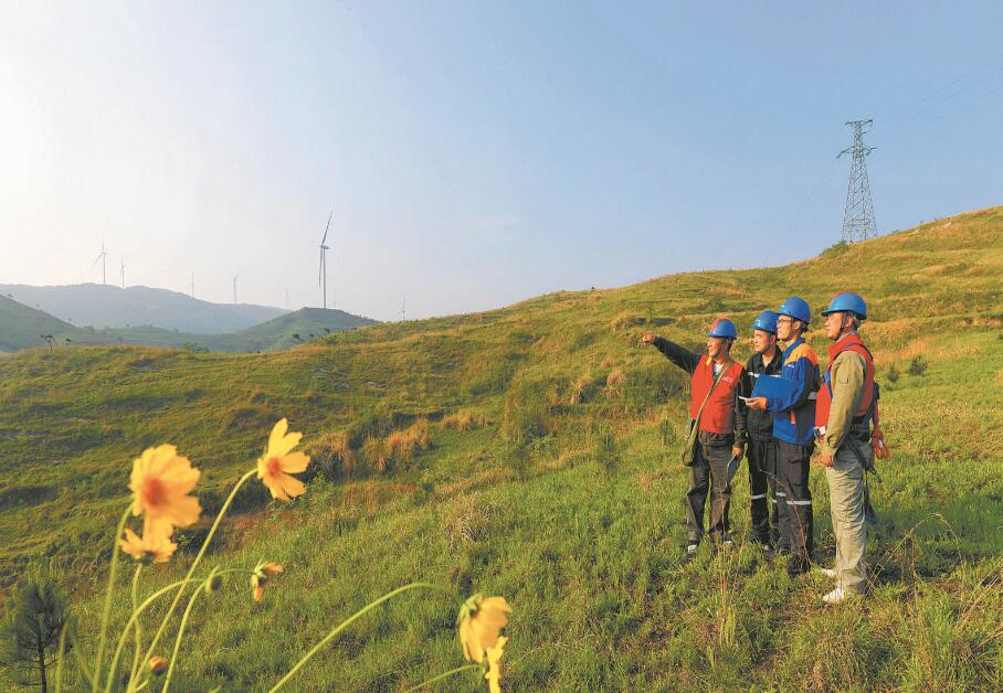 站在僰王山的主峰黑帽頂,就能看見(jiàn)橫跨山巔的鐵塔和銀線(xiàn),那是逶迤而行的±800千伏賓金線(xiàn)。眺望遠(yuǎn)方的山巒,鐵塔一座接著一座,輸電線(xiàn)路從四川宜賓出發(fā),向東延伸一千多公里,直到浙江金華,將江河的力量轉(zhuǎn)化為支撐經(jīng)濟(jì)社會(huì)發(fā)展的綠色動(dòng)能。
