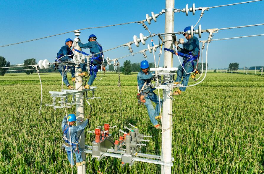 入夏以來,持續(xù)的高溫天氣讓電網(wǎng)負荷面臨極大“烤”驗。國網(wǎng)滑縣供電公司加快推進電網(wǎng)升級補強、安全隱患治理等工作,切實提升電網(wǎng)運行質(zhì)量和供電可靠性,為廣大用戶清涼度夏提供充足電力保障。當天,在10千伏留賈線新建工程現(xiàn)場,作業(yè)人員穿戴好全套安全防護用具,動作熟練地爬上電桿,嚴格按照操作標準逐項完成接開關(guān)引流線、安裝真空開關(guān)等一系列操作。天氣炎熱加上施工作業(yè),工作人員的臉上很快就冒出了豆大的汗珠,他們顧不得擦去,只專注于手中的操作。他們從早上6:30分開始,經(jīng)過6個多小時的揮汗奮戰(zhàn),12:25分,10千伏留賈線路運成功,為附近村民生產(chǎn)生活用電提供堅強電力能源保障,確保“清涼”度夏。