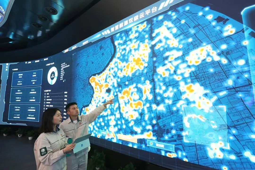 ▲國(guó)網(wǎng)上海電力員工利用智慧能源雙碳云平臺(tái)為用戶(hù)定制節(jié)能減排方案