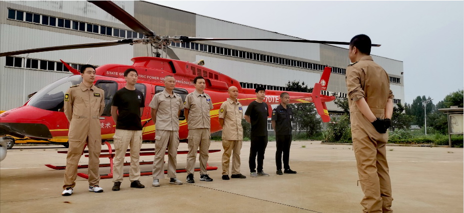國網(wǎng)空間技術(shù)公司輕型直升機(jī)機(jī)組在河北保定定興臨時起降點做飛往涿州的準(zhǔn)備。(師維藝)