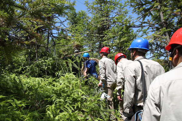 從9月1日開始,國網(wǎng)浦城縣供電公司60名員工在建陽區(qū)大山深處,在沒有道路的情況下,背著沉重的設(shè)備徒步上山,冒著高溫登塔安裝,為了節(jié)省時(shí)間,他們隨身攜帶干糧,晚上就近住宿。通過連續(xù)5天的鏖戰(zhàn),在110千伏新江線上安裝避雷器71組,更換雷擊瓶4基,清理18處樹障隱患點(diǎn),有效提升了線路供電可靠性,確保電網(wǎng)健康運(yùn)行。