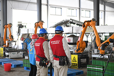 在育秧中心,一沓沓水稻秧苗托盤(pán)正在運(yùn)輸軌道車(chē)上進(jìn)行傳送,流水線(xiàn)的最后,機(jī)械臂將托盤(pán)疊放起來(lái)運(yùn)至暗化區(qū)。“原來(lái)都要自己播種,然后把長(zhǎng)好的秧苗拔出來(lái)捆成捆,運(yùn)回家,現(xiàn)在方便了,機(jī)器插上電,就全幫我們做完了。”種植戶(hù)李大爺開(kāi)心地說(shuō)到。
