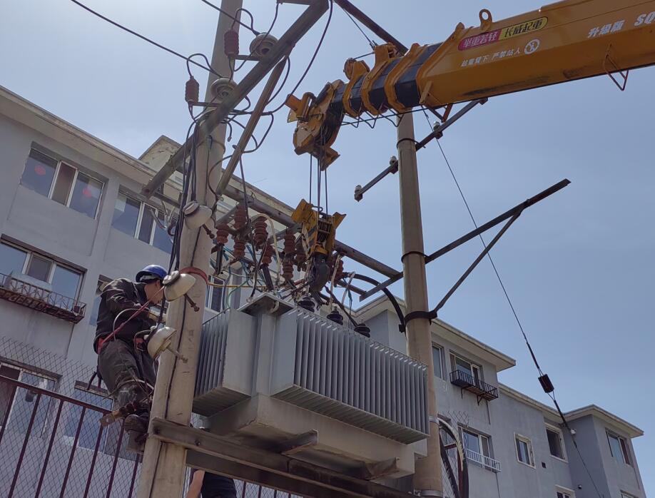 中國電力網(wǎng)訊(通訊員 李欣)“向右面一點,往下放,好……”。5月8日內(nèi)蒙古電力(集團)有限責任公司呼和浩特供電公司賽罕分公司的工作人員對10kV泰安變9613滿東線干休所民政局小區(qū)更換變壓器,以確保居民日常生活可靠用電。