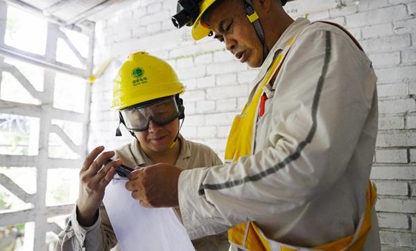 8月6日,網(wǎng)格班員工秦甫濤和同事頭戴安全帽,手持工具箱,肩扛電表箱,快步走進(jìn)永川郵電小區(qū)。