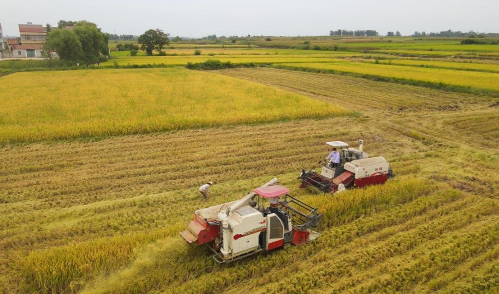 湖北襄陽市襄州區(qū)黃龍鎮(zhèn)黃溝村的千畝稻田陸續(xù)開始收割。(受訪者供圖)