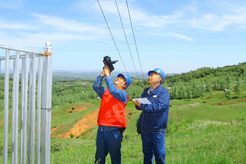國網(wǎng)臨夏供電公司鐵寨供電所員工楊志凌和馬仲明為云上河州康養(yǎng)基地電力設(shè)施進(jìn)行巡視、測(cè)溫