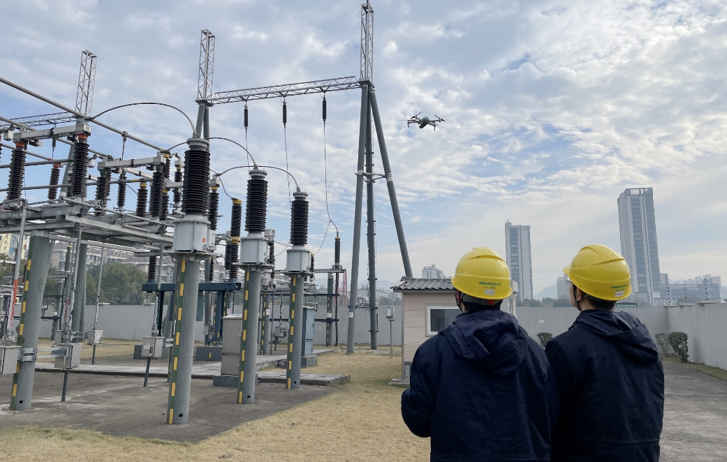 特巡中,巡視人員采用“聽、看”的方式,檢查設備外觀是否正常,有無異響等情況;通過紅外測溫儀在高負荷時間段對設備引線接頭、導線連接處進行測溫,確保設備無異常發(fā)熱現(xiàn)象;利用無人機對全站設備進行高空巡視,對重點部位懸停拍照,多維度確保巡視工作“不漏隱患、不留死角、全面排查”。
