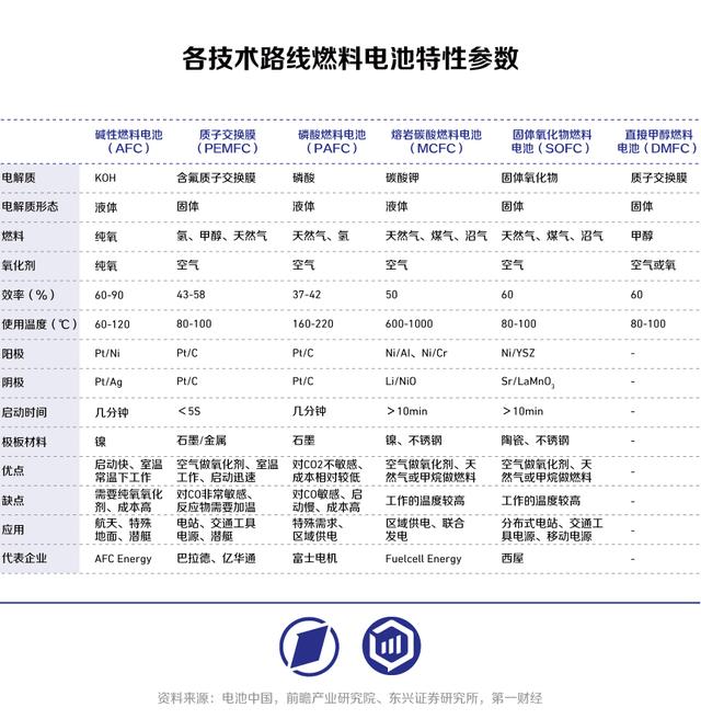 按電解質(zhì)不同,氫燃料電池可分為質(zhì)子交換膜燃料電池(PEMFC)、堿性燃料電池(AFC)、固體氧化物燃料電池(SOFC)、熔融碳酸鹽燃料電池(MCFC)、磷酸燃料電池(PAFC)等。