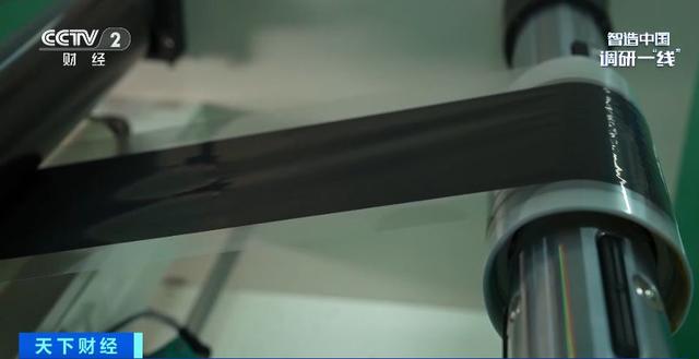 一條產(chǎn)線正在進(jìn)行膜電極的生產(chǎn),制作過程就是將催化劑均勻涂在質(zhì)子交換膜的兩側(cè)。這條產(chǎn)線的催化劑只有3微米厚,相當(dāng)于正常頭發(fā)絲的二十分之一。它可以使生產(chǎn)的膜電極更薄、重量更輕,從而降低整個(gè)電堆的厚度,提高功率。目前,這條產(chǎn)線可以實(shí)現(xiàn)每天生產(chǎn)1萬片膜電極。