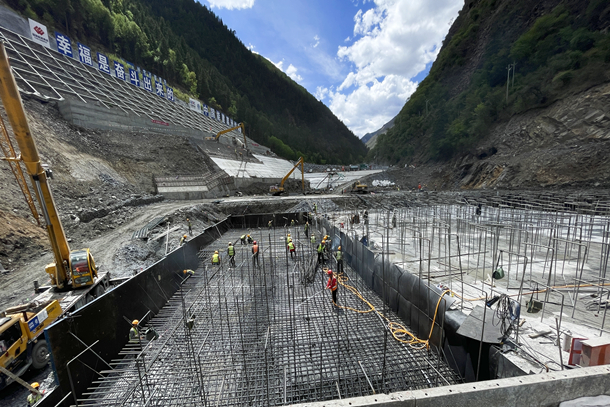 圖為綽斯甲水電站大壩澆筑施工現(xiàn)場(chǎng)