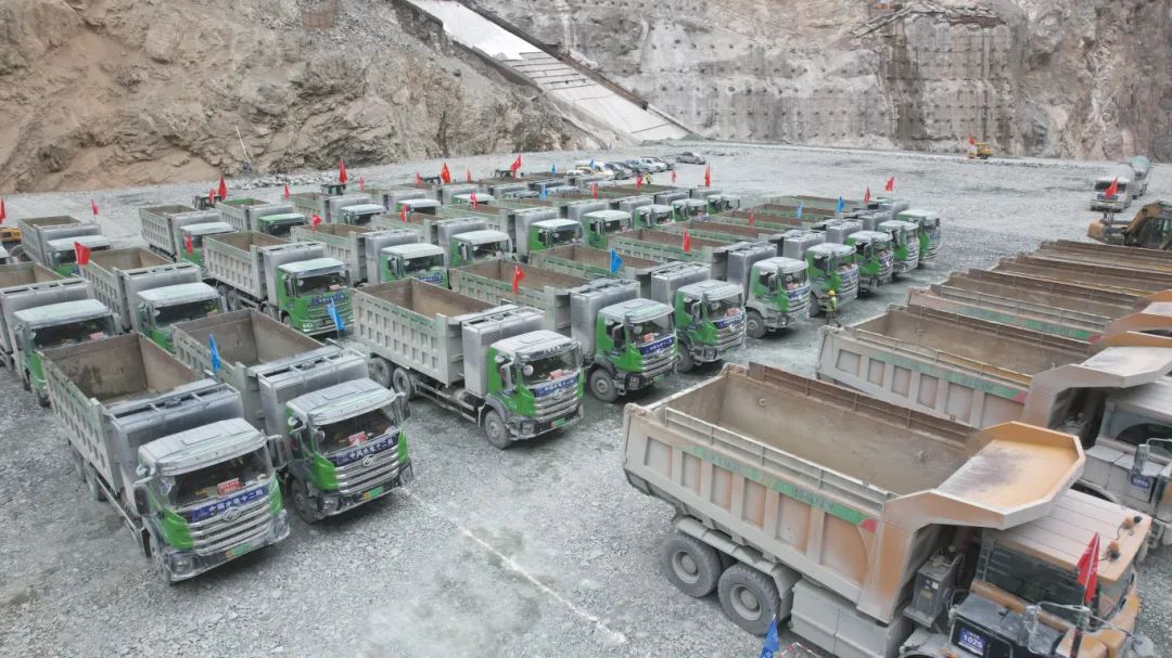 為建設生態(tài)環(huán)保大壩,項目團隊開創(chuàng)性地在高原寒冷地區(qū)大規(guī)模使用新能源自卸車運輸填筑壩料,截至目前已投入近90臺新能源自卸車、建成3座新能源充換電站,并對所有自卸車進行智能化改造,全面提升壩料運輸效率、降低整體管理成本。新能源自卸車的大規(guī)模使用使大壩填筑全過程可累計減少二氧化碳排放量6.4萬噸,為國內(nèi)水利水電行業(yè)在高原寒冷地區(qū)筑造更多標志性工程探索出了“降本增效、低碳環(huán)保”新路徑。