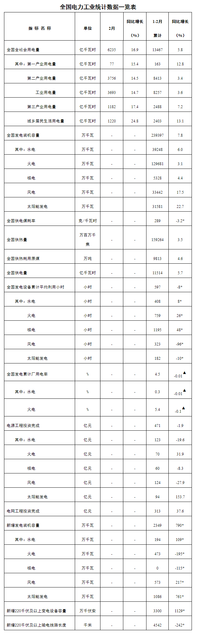 注:1.全社會(huì)用電量為全口徑數(shù)據(jù),全國(guó)供電量為調(diào)度口徑數(shù)據(jù)。2.“同比增長(zhǎng)”列中,標(biāo)*的指標(biāo)為絕對(duì)量;標(biāo)▲的指標(biāo)為百分點(diǎn)。