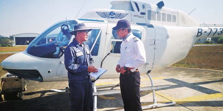 廣東電網(wǎng)公司佛山供電局輸電所智能運維人員利用直升機吊艙開展架空線路激光建模。 麥俊佳 攝