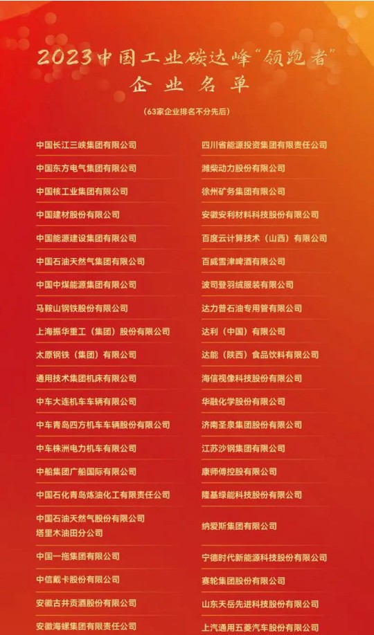 2023中國工業(yè)碳達峰“領(lǐng)跑者”企業(yè)名單