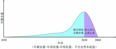 就上升段和下降段的趨勢(shì)總體來看,年份時(shí)間越長(zhǎng)、峰年峰值越高,由上升曲線和下降曲線所圍成的區(qū)域面積就越大,積累的溫室氣體總量就越多,溫室效應(yīng)后果就越嚴(yán)重。由此,必然導(dǎo)致平衡排放與吸收的難度,以及完成吸收任務(wù)的困難加大,時(shí)間拉長(zhǎng)。