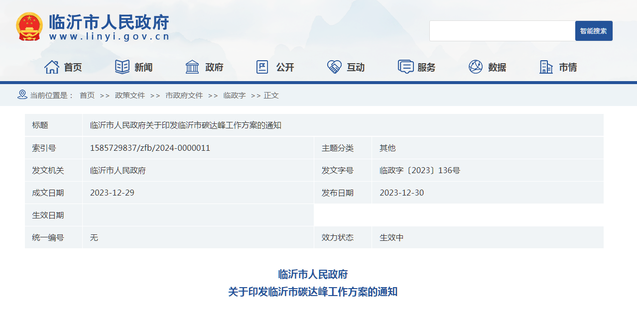 現(xiàn)將《臨沂市碳達峰工作方案》印發(fā)給你們,請結(jié)合實際,認真抓好貫徹落實。