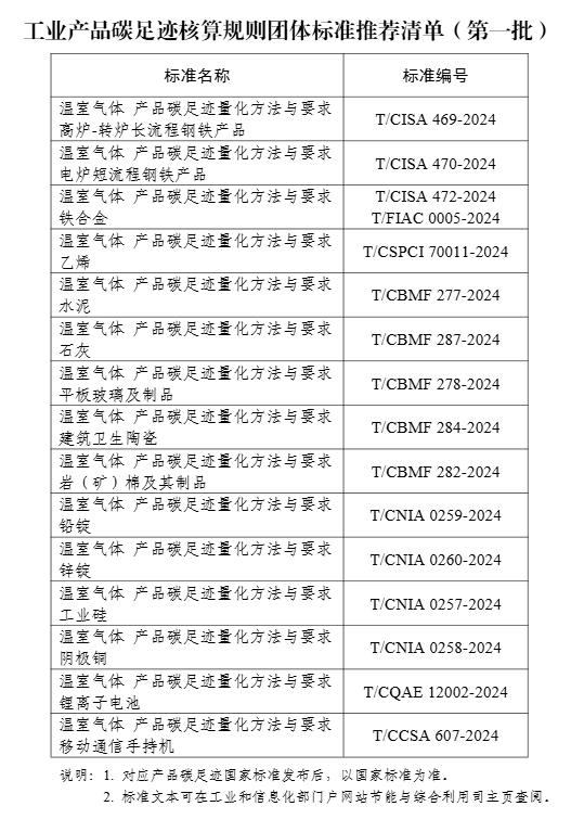 工業(yè)和信息化部 生態(tài)環(huán)境部 國(guó)家發(fā)展改革委 市場(chǎng)監(jiān)管總局關(guān)于公布工業(yè)產(chǎn)品碳足跡核算規(guī)則團(tuán)體標(biāo)準(zhǔn)推薦清單(第一批)的通告
