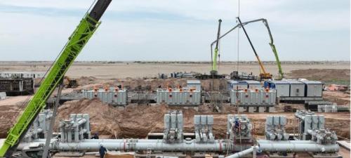 新疆葉城50萬千瓦光伏發(fā)電項目位于喀什地區(qū)葉城縣光伏產(chǎn)業(yè)園,是塔里木油田公司落實黨中央碳達(dá)峰碳中和決策部署,貫徹新發(fā)展理念、推動高質(zhì)量發(fā)展的新能源產(chǎn)業(yè)重點項目,也是喀什地區(qū)千萬千瓦光伏大基地建設(shè)的重點項目。項目占地面積15000畝,今年4月30日正式開工,建設(shè)有1座光伏發(fā)電站、1座220千伏升壓匯集站,配套建設(shè)1座500兆瓦時儲能站。