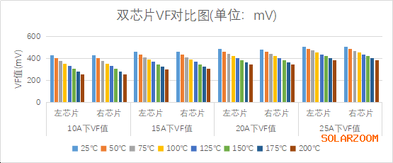 經(jīng)測試發(fā)現(xiàn),同一個(gè)晶圓上的2個(gè)芯片在封裝之后VF不超過3mV,這個(gè)差值在整個(gè)二極管的壓降中僅約1%,在測試誤差范圍之內(nèi),而《無法忽視的真相》一文中直接按50mV模擬分析,完全是脫離實(shí)際數(shù)據(jù)的猜想。
