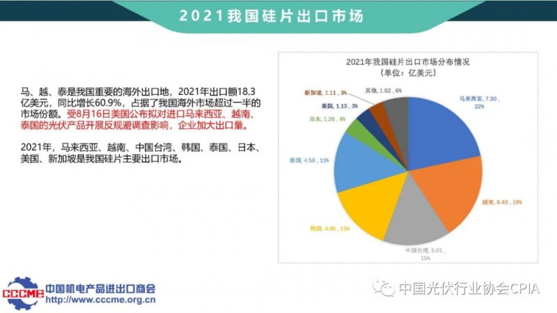 中國機(jī)電產(chǎn)品進(jìn)出口商會光伏分會秘書長張森介紹光伏產(chǎn)品國際貿(mào)易情況。2021年我國光伏產(chǎn)業(yè)規(guī)模、對外貿(mào)易量持續(xù)擴(kuò)大,行業(yè)發(fā)展主要痛點是光伏貿(mào)易摩擦再次升級、海運(yùn)費(fèi)和匯率大幅上漲等。
