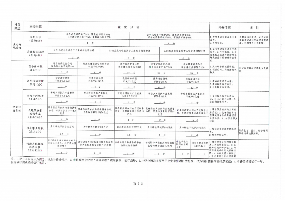 根據(jù)文件,其評分內(nèi)容主要包括企業(yè)投資能力、項目前期深度、荷儲網(wǎng)源、多能互補(bǔ)、產(chǎn)業(yè)協(xié)同帶動、生態(tài)治理以及地方經(jīng)濟(jì)貢獻(xiàn)等八大類,各類項目下面細(xì)小劃分35個小項。不同類別之間設(shè)置不同分值,以總得分計算排序。