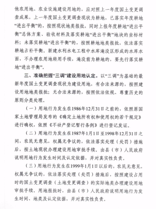 3月9日,自然資源部辦公廳印發(fā)《關于以"三調"成果為基礎做好建設用地審查報批地類認定的通知》,自4月15日起實施。《通知》明確了建設用地審查報批時地類認定規(guī)則。對報批時現(xiàn)狀為建設用地的,應根據(jù)其來源合法性進行分類處理。有合法來源的,按照建設用地地類報批;無合法來源的,按照建設占用時的國土變更調查(土地變更調查)的實際地類報批,地類為耕地的,應依法落實耕地占補平衡。