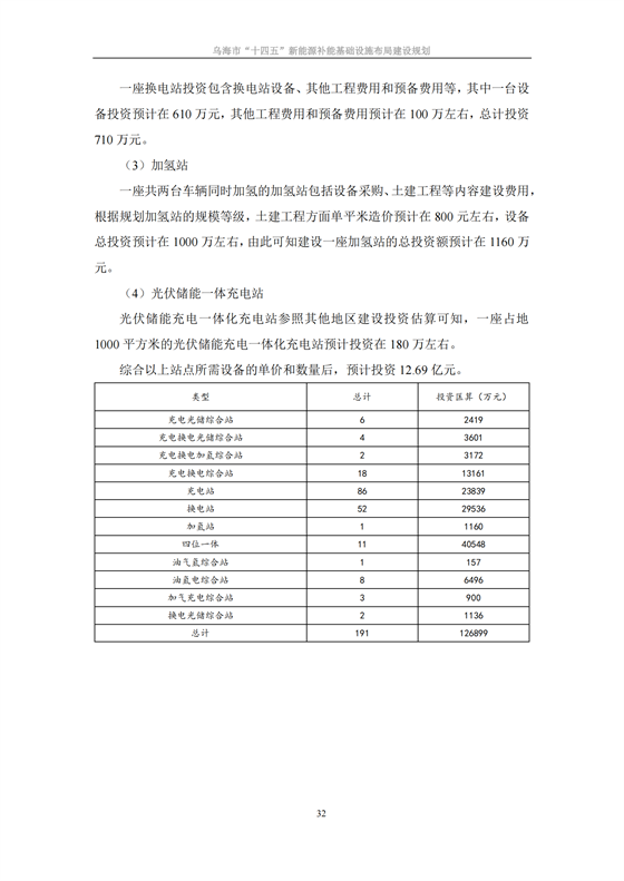 日前,內(nèi)蒙古自治區(qū)烏海市能源局印發(fā)《烏海市“十四五”新能源補(bǔ)能基礎(chǔ)設(shè)施布局建設(shè)規(guī)劃》,《規(guī)劃》提出發(fā)展目標(biāo):建設(shè)補(bǔ)能基礎(chǔ)設(shè)施共計(jì)194座,包含11座四位一體綜合站,加油加氫充電綜合站8座,加油加氣加氫綜合站1座,充電換電綜合站18座,充電換電加氫綜合站2座,充電換電光伏儲能綜合站4座,充電光伏儲能綜合站6座,換電光儲綜合站2座,加氣充電綜合站3座,充電站86座,換電站52座,加氫站1座。