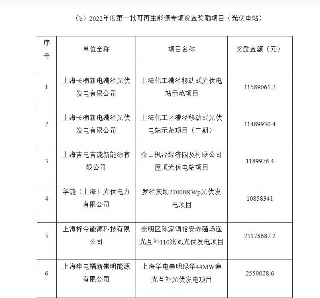 為促進本市可再生能源發(fā)展,推進節(jié)能減排和能源低碳轉型,根據(jù)《上海市可再生能源和新能源發(fā)展專項資金扶持辦法》(滬發(fā)改能源〔2016〕136號)、《上海市可再生能源和新能源發(fā)展專項資金扶持辦法(2020版)》(滬發(fā)改規(guī)范〔2020〕7號),市發(fā)展改革委組織開展了2022年度第一批可再生能源專項資金扶持項目撥付資金的核實確認工作。